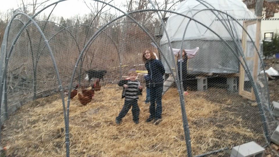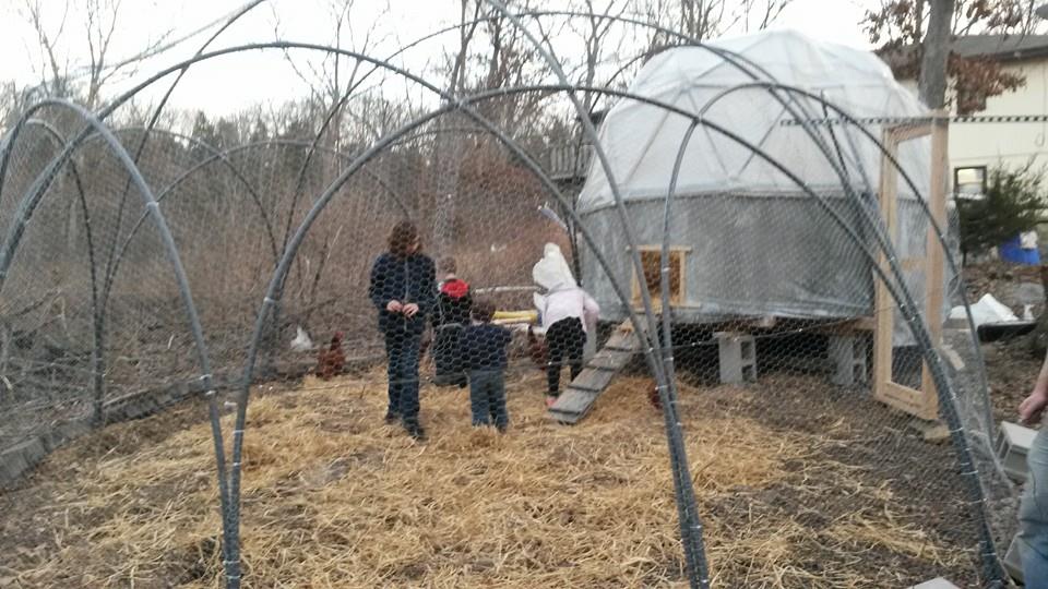 "Well, here is todays progress on the Chicken Dome Coop. 10 Foot dome on a 3 foot knee wall...