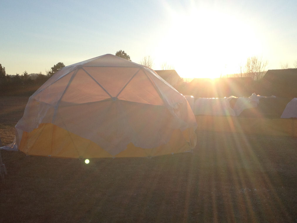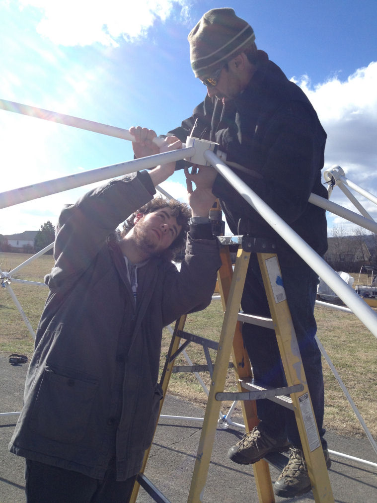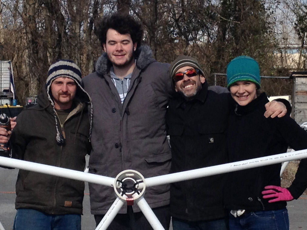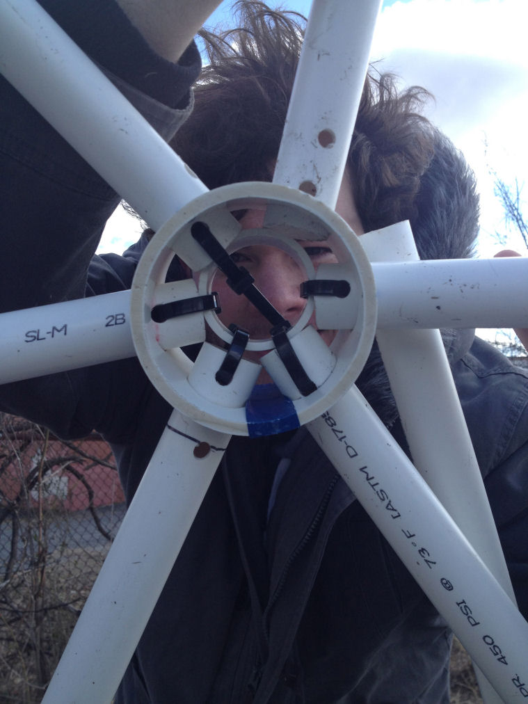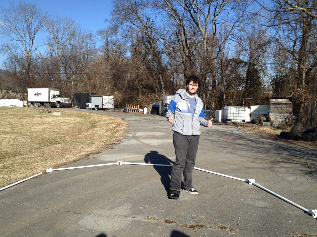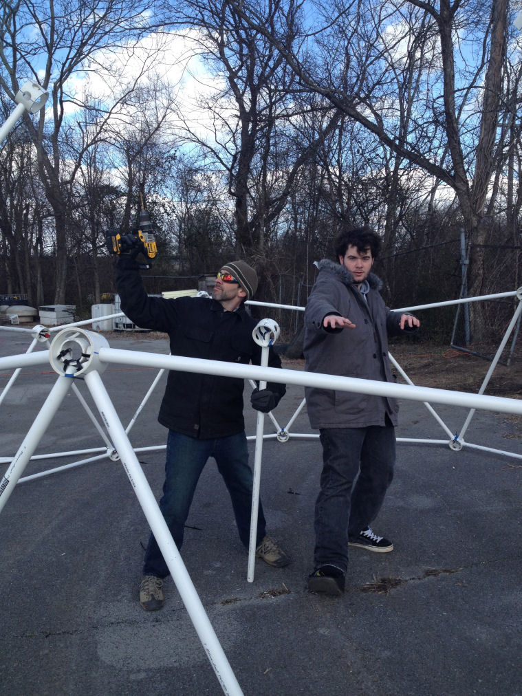 I just wanted to say thank you so much for helping us out with the dome for the high school student we have been working with. I think he had a lot of fun learning how to put it together and we can't wait for him to start planting! He had never really done any kind of construction, but he measured out all of the PVC and cut everything by himself. He even had a boot from a sprained ankle and put it together with just a bit of extra help! I'm enclosing a few pictures of the process for you guys to check out. If you'd like I can also send you full size versions of any of them for you to use on your website.